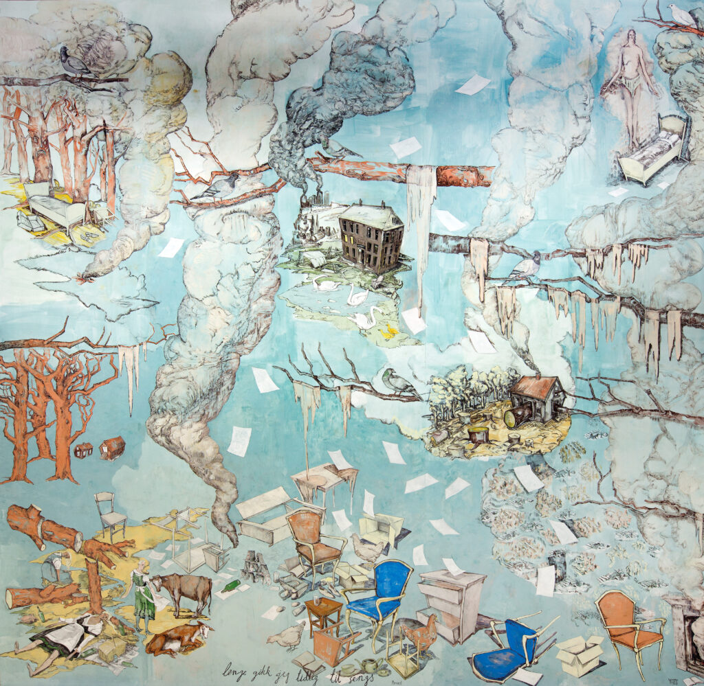 I forsoningens navn vil Vanessa Bairds mye omtalte maleri To Everything There is a Season (2014), som i en årrekke har hengt i foajeen til Kulturrådet (nå Kulturdirektoratet), samles med sine to «søsken», Lenge gikk jeg tidlig til sengs (2013) og Lyset forsvinner – bare vi lukker øynene (2012). Serien på tre nesten seks meter høye malerier var opprinnelig bestilt til Helse- og omsorgsdepartementet og Landbruks- og matdepartementet, men som mange vil minnes ble det siste av de tre maleriene avvist av departementene, da Bairds forvrengte figurer og bildets flagrende ark ga for tydelige assosiasjoner til terrorangrepet. Striden viser hvordan narrativet omkring et kunstverk ikke alltid er noe kunstneren eller kuratoren kan styre. At regjeringskvartalet ikke bare er et offentlig og nasjonalt sted, men også en arbeidsplass for departementsansatte, er et hensyn som også inngår i både konserverings- og kurateringsarbeidet med verkene som ble skadet i bombeangrepet. Skadene og sårene, for eksempel på Hannah Ryggens billedvev Vi lever på en stjerne, Lisbeth Dæhlins keramikkrukker eller Knut Steens skulptur Aurora, er i seg selv meningsbærende tidsavtrykk, som gir arbeidene en tilleggsverdi som historiske vitner.[8]