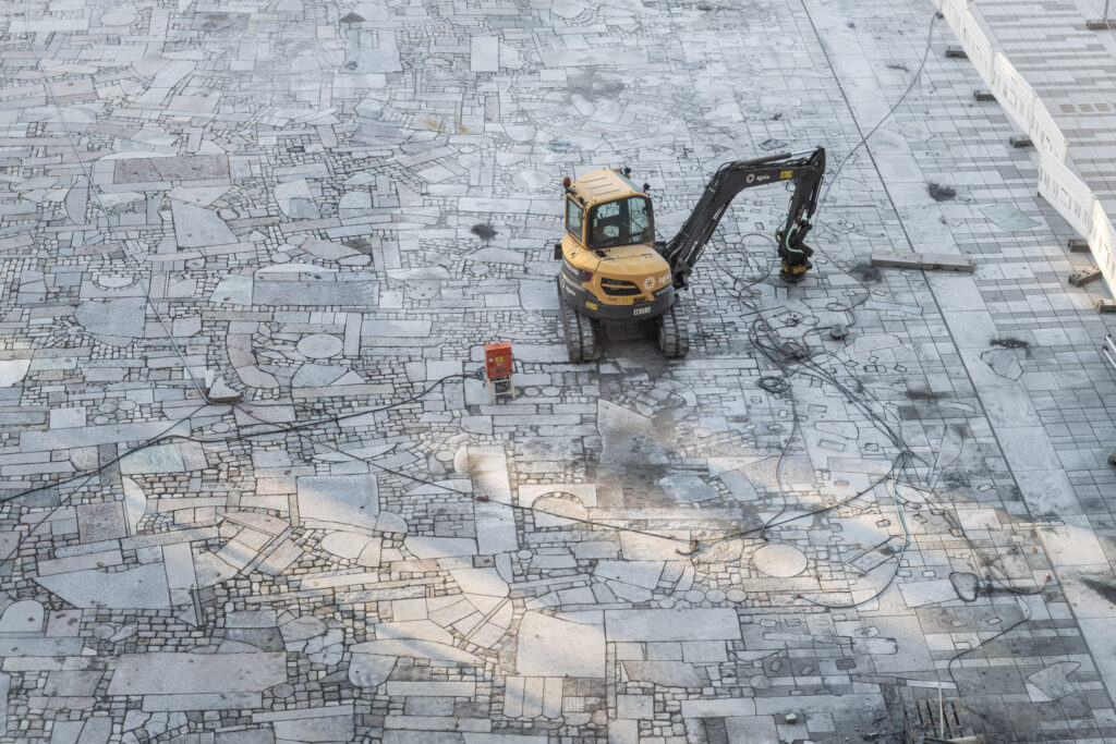 Stein er evighetens og monumentalitetens materiale, men i et av de første kunstverkene man møter om man entrer det nye regjeringskvartalet fra Akersgata, er det også et materiale for mutasjon og forandring. Jumana Mannas Sebastia er en uregjerlig mosaikk av steinrester donert fra kommuner i hele landet som fyller 800 kvadratmeter av Johan Nygaardsvolds plass. Som bygulv på plassen foran Høyblokka er det et av de mest offentlige og tilgjengelige av de nye kunstverkene i regjeringskvartalet. Samtidig kan verket sees som et prisme for ideene og utfordringene som preger kuratorarbeidet i en så ladet kontekst – et lokalt sted i Oslo sentrum, men også et nasjonalt fokuspunkt og maktsentrum. Ikke minst tydeliggjør det hvordan premissene for det statlige oppdraget med offentlig kunst er radikalt endret siden Viksjøs tid: Arbeidet er valgt av en jury etter at ti kunstnere ble invitert av KORO til å levere skisseforslag til bygulvet. Prosessen er symptomatisk for en samtid hvor kuratorer og kunstinstitusjoner er svært bevisst på sin egen definisjonsmakt og hvordan de forvalter den.
