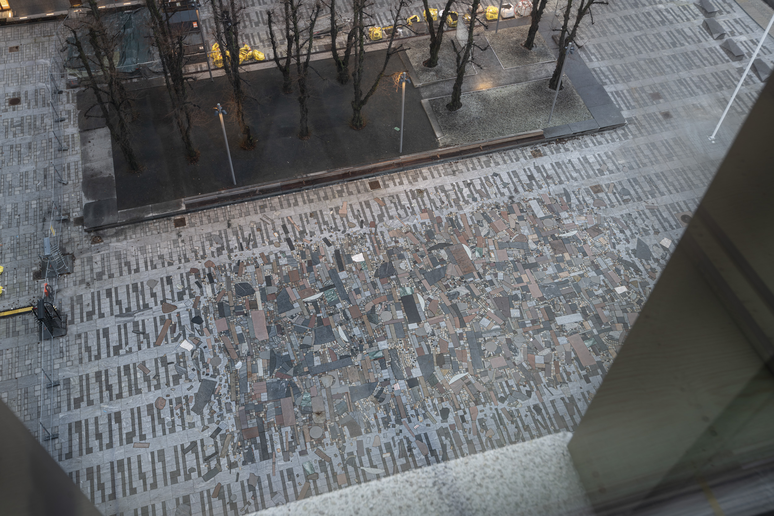 One of the biggest and most visible spaces in Oslo’s New Government Quarter is the city floor, accessible to all who pass through or visit the area. The artist Jumana Manna completed in the autumn of 2025 the artwork Sebastia, working on the design since 2022.