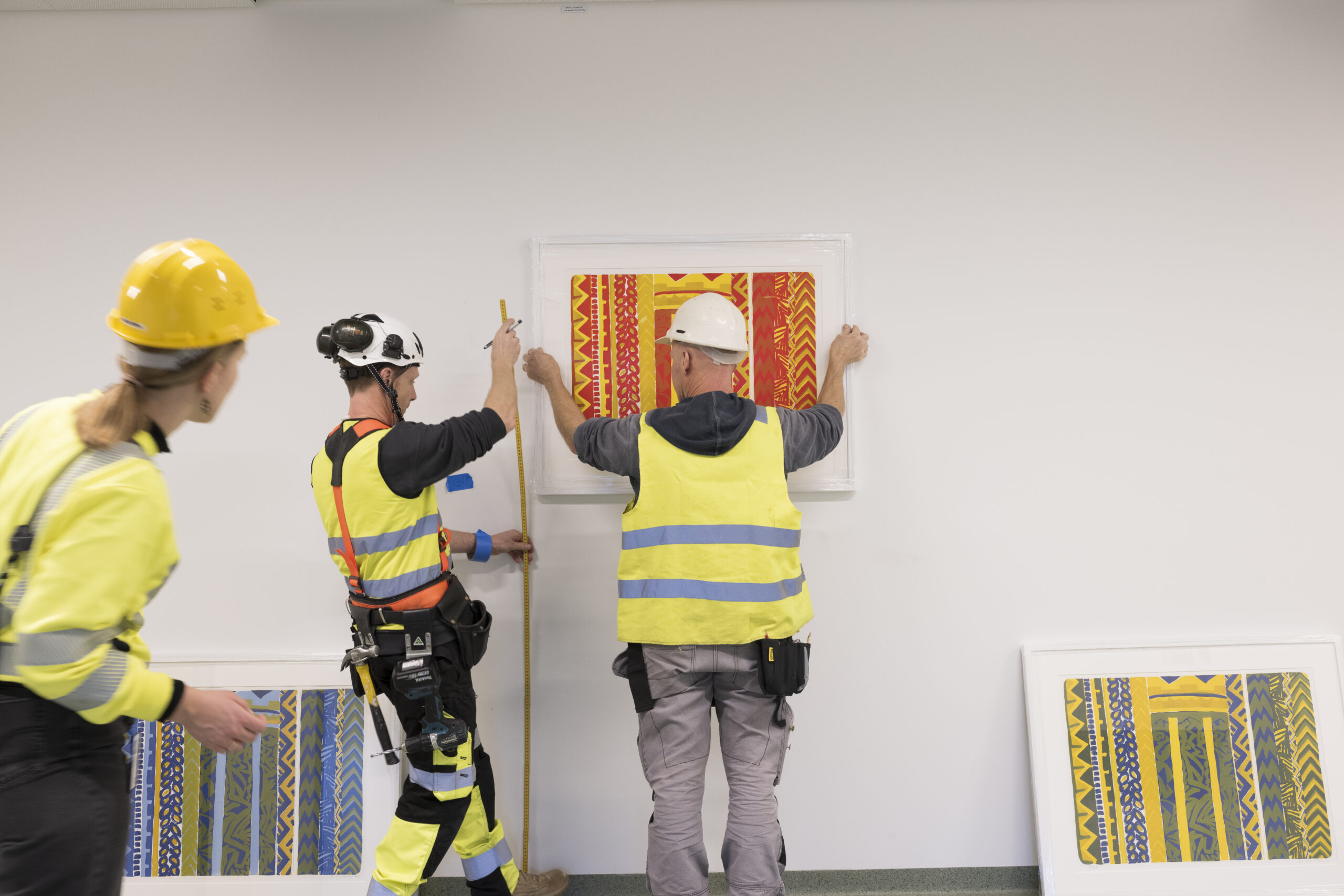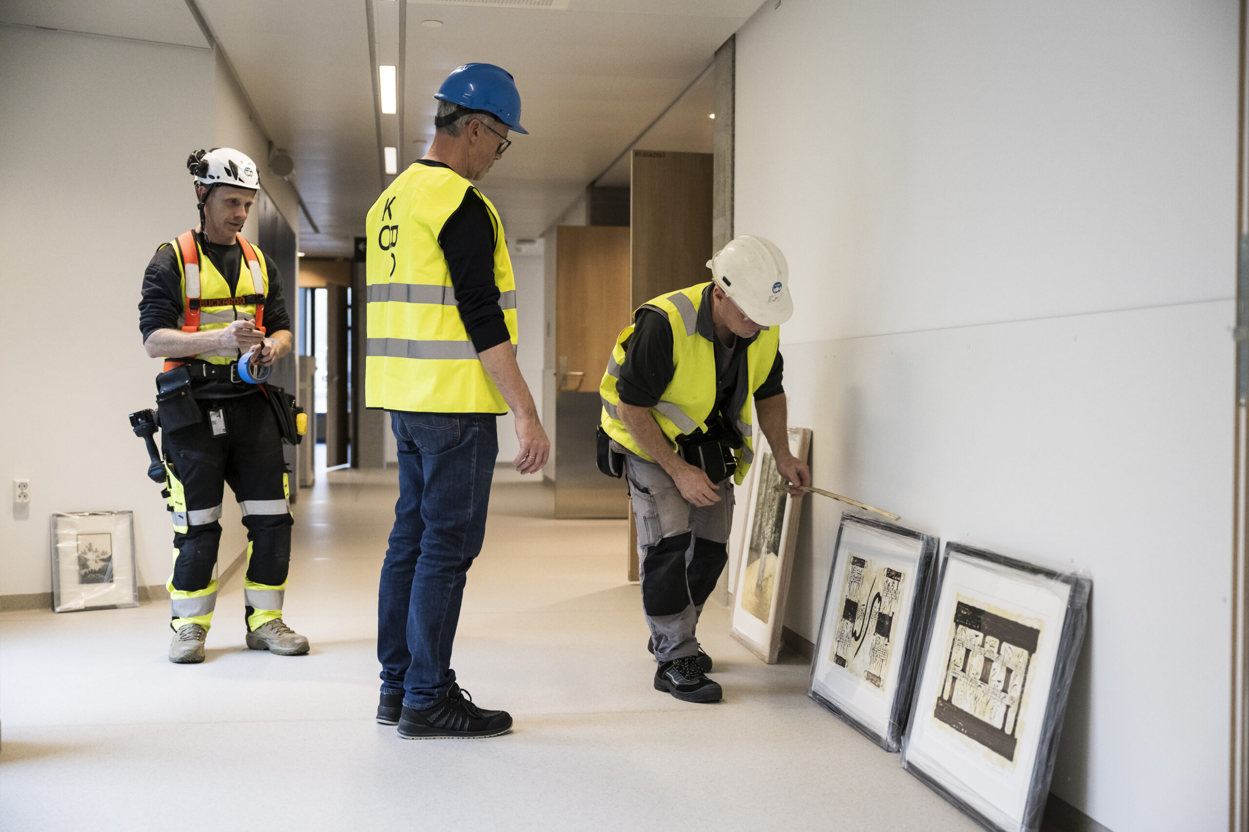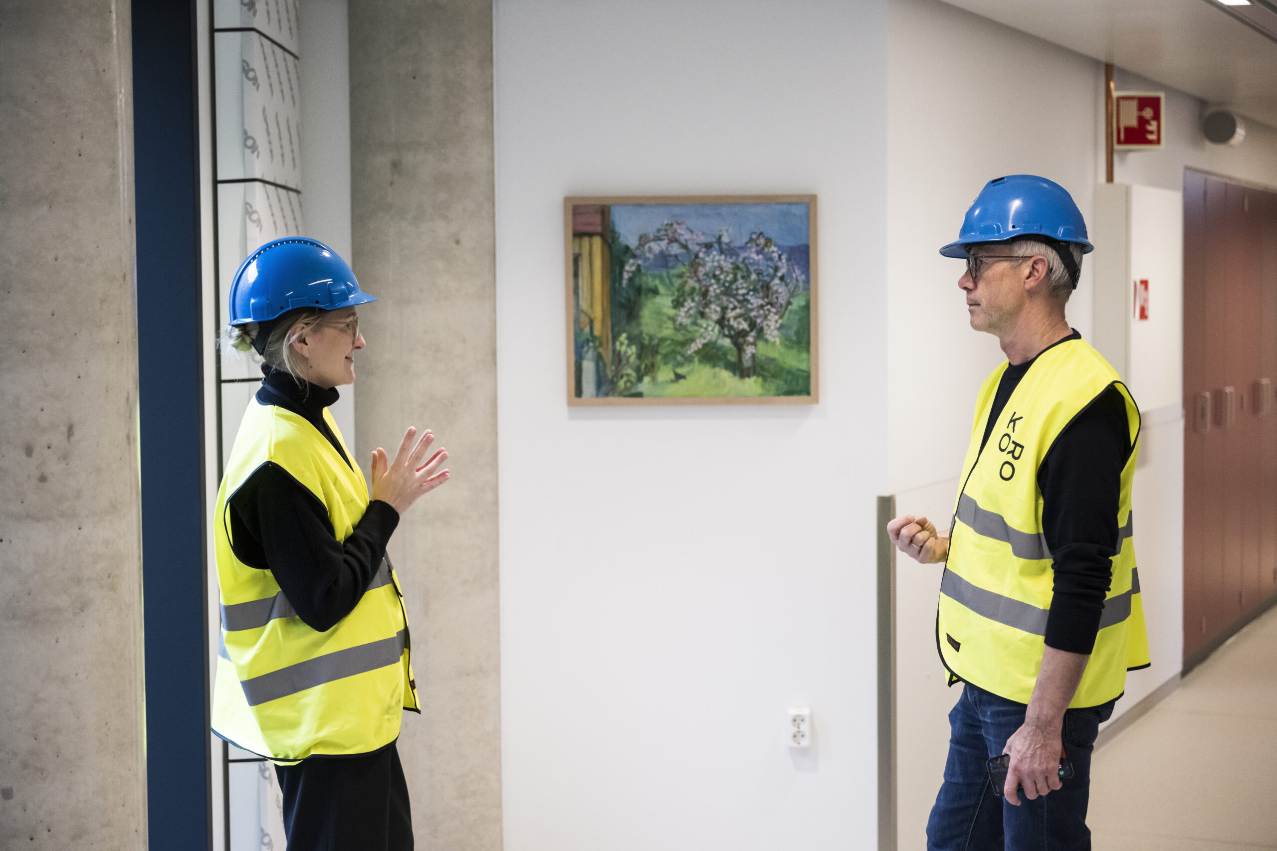 – Da vi jobbet med dette satt vi nesten bare med plantegninger og renderinger. Det er fantastisk å se de store stedsspesifikke prosjektene på plass, og at de kommer skikkelig til sin rett. Med tanke på all kunsten som skulle henges på vegg har Sofies rolle i den siste perioden vært viktig – å faktisk gå rundt på sykehuset, forstå rommene og til slutt fastslå hvor verkene skal monteres, sier Marte.
