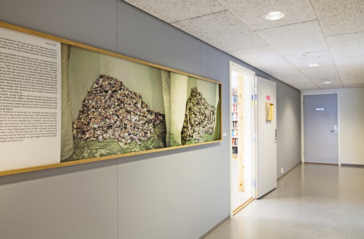 Bildet viser et fotografi av haugen med penger i galleriet, sammen med et brev til galleristen i Milano, der kunstneren forteller om ideen til utstillingen. Cracking concrete handler om tillit og moral. Penger som kunstneren har jobbet hardt for, settes opp mot publikums mulighet til å skaffe seg de samme pengene uten å måtte gjøre noe for det. Verket kan også handle om det å opptre som tyv dersom det er lagt til rette for det. Det krever sterk selvdisiplin å ikke gi etter for begjæret etter pengene når ingen ser deg og det ikke vil få noen konsekvenser å forsyne seg. I tillegg har verket en humoristisk dimensjon som løftes frem når det stilles ut i et fengsel – en utsmykning som bokstavelig talt består av et «fjell» med penger.