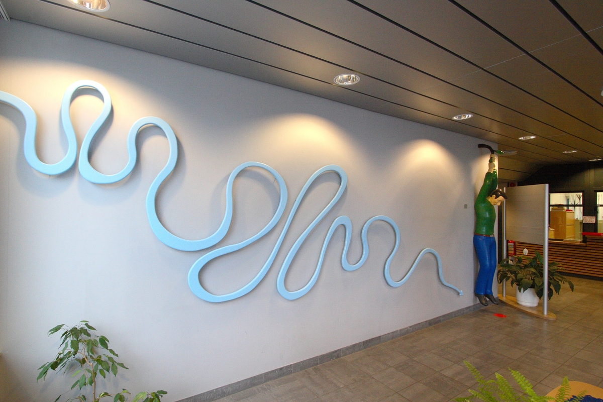 Utskjæring i MDF plate og figuren er støpt i epoxy og glassfiber, spraylakkert og malt