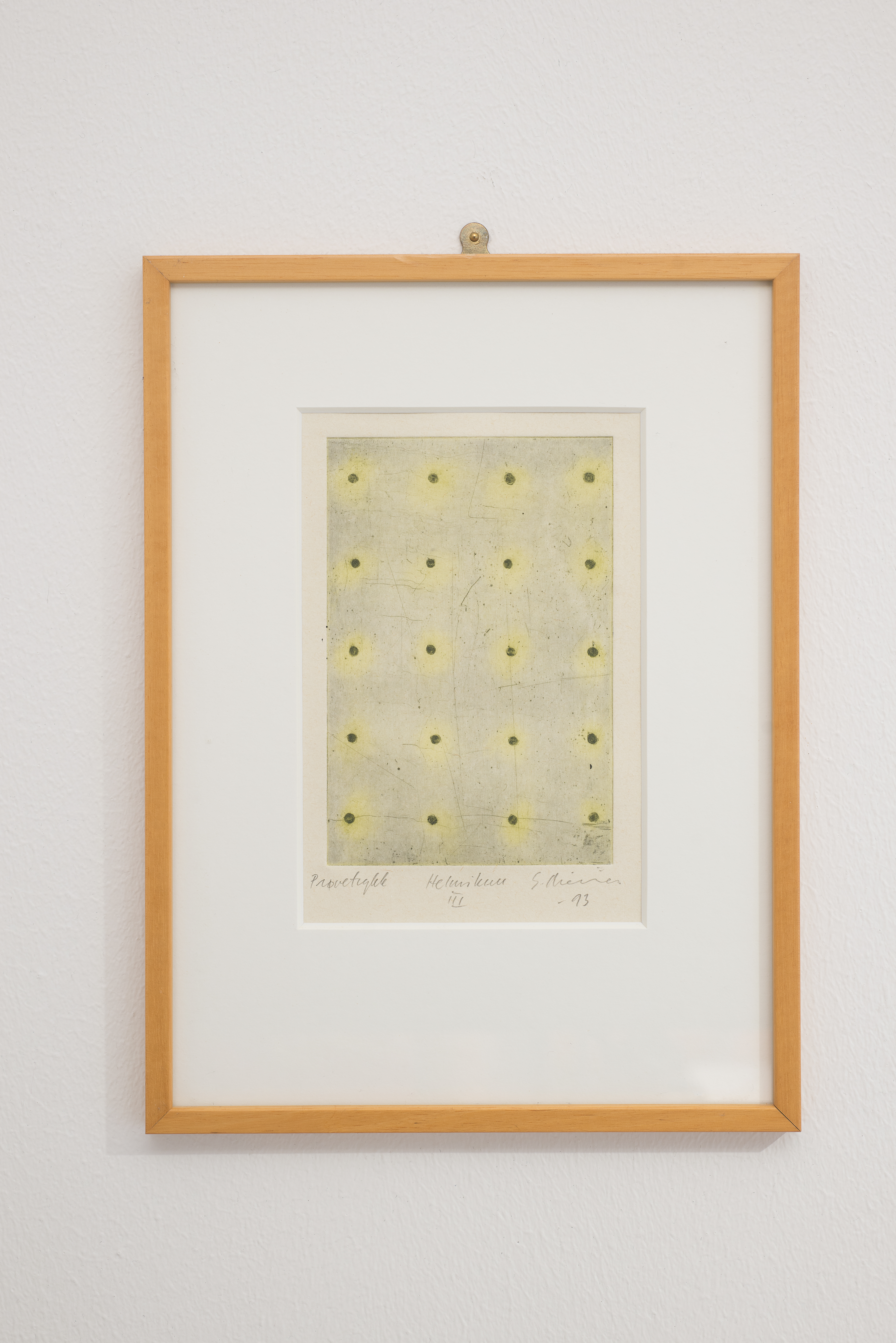 Stålbanda i trapperommet og veggen med veggskulpturane spelar mot kvarandre gjennom motsetningar i uttrykk og likskapar i materiale. Desse maskinelt produserte verka vert igjen kontrastert av Nieminens 16 grafiske arbeid i kantina. Uttrykket til dei handlaga kaldnålsraderingane skaper ei intim atmosfære.