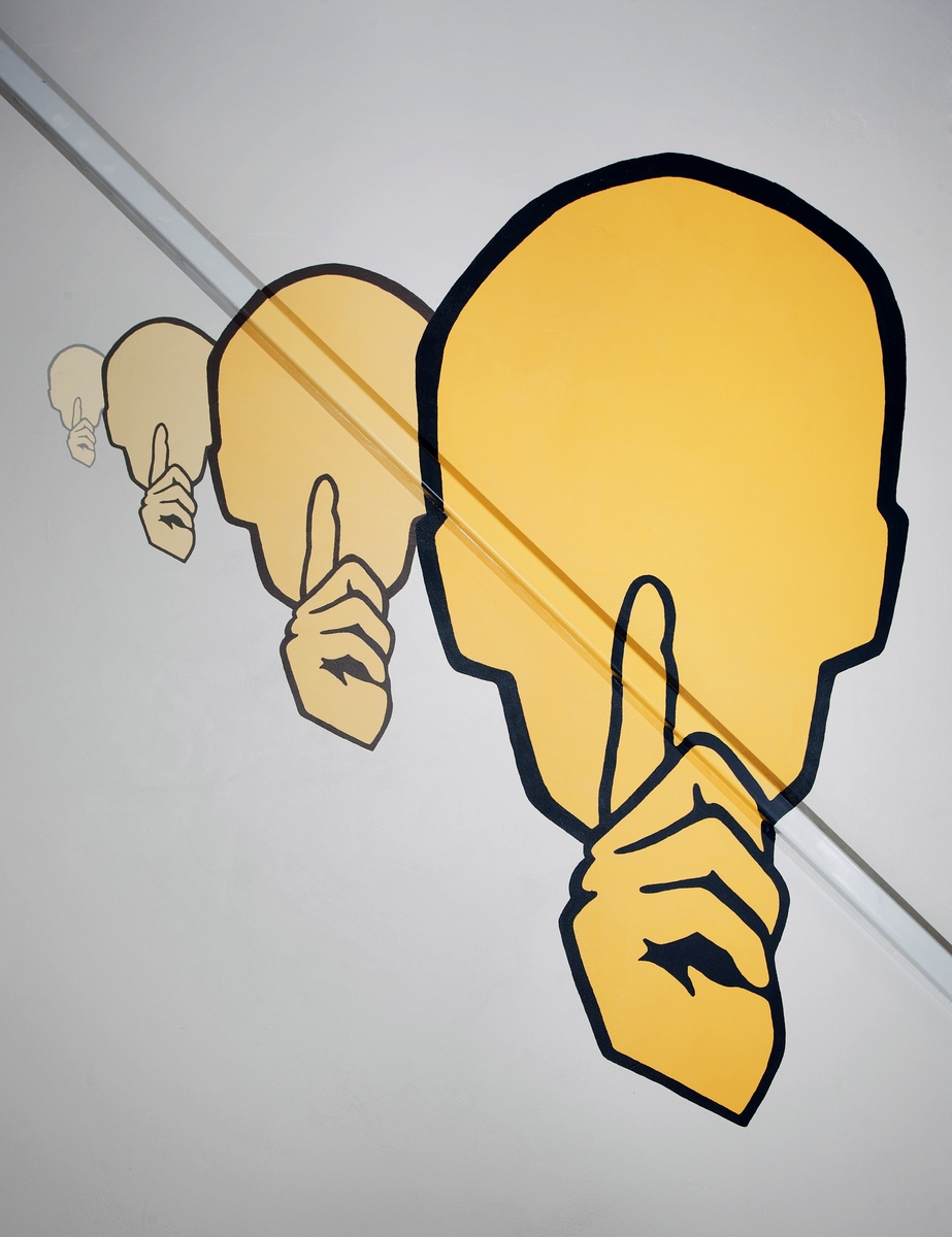 Bergquist ville lage en illusjon av et hode som kommer ut av veggen. Det ansiktsløse hodet med en finger som hysjer passer godt sammen med institusjonen tollstasjon. Det handler om at de som sitter på hemmeligheter må klare holde på den. Hva vet vel vi om hvilke hemmeligheter som ligger bak veggen og de lukkede dører?