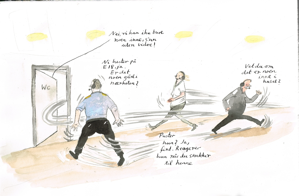 Tegningen baserer seg på kunstnerens observasjoner og inntrykk gjennom diverse opphold ved Nødmeldingssentralen, hhv. avdelingene for politi, brann og AMK og samtaler med ansatte.