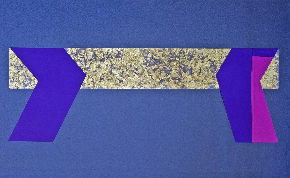 Brettet patinert messing med pålimt lys og mørk lilla ullfilt