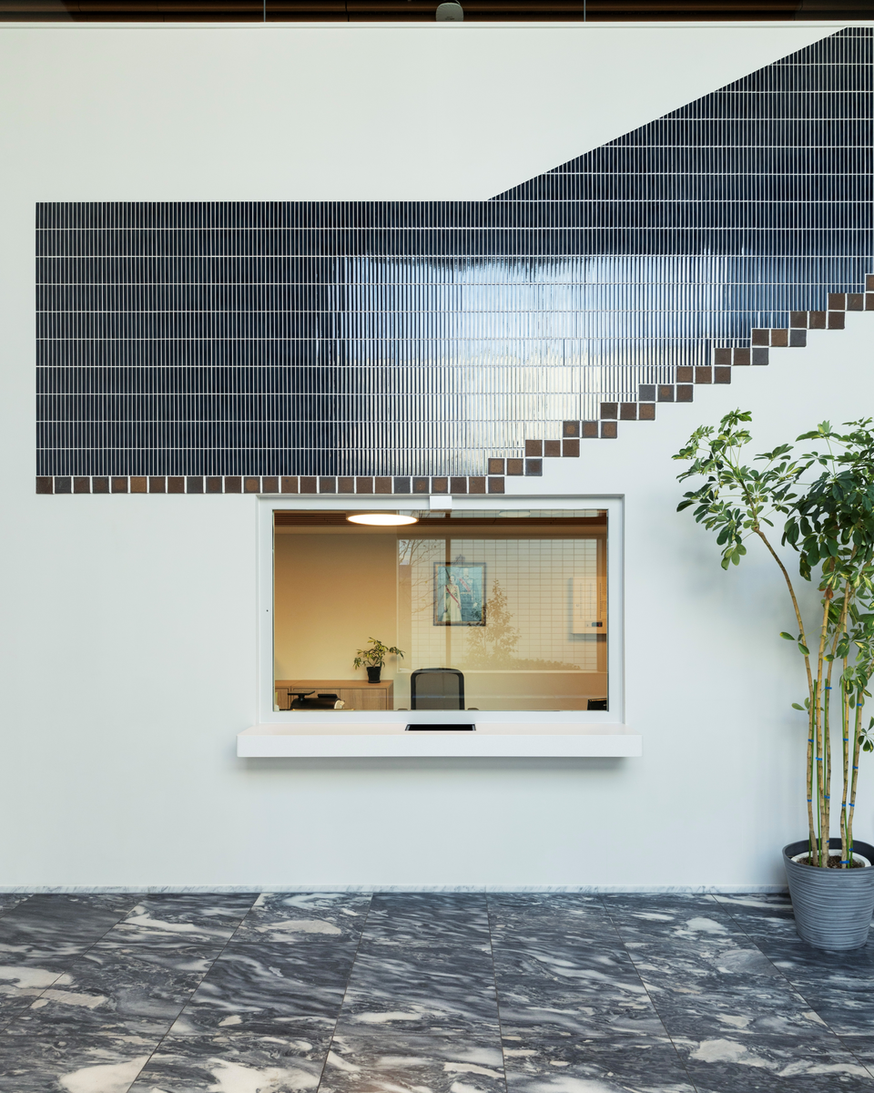 Høyt på veggene vendt mot maleriet og sittebenken er kunstverket Tokyo Escalation av Matias Faldbakken (f. 1973) montert. Verket er et veggrelieff i keramiske fliser, og formen etterligner trappeoppganger og trapperom, inkludert avsatsene, som er vanlig i offentlige miljøer. Det språklige utgangspunktet for tittelen er sammenhengen mellom ordene eskalering, skala, trapp og stige. Den skulpturelle opplevelsen av verket skal være en heving eller en oppadgående bevegelse.