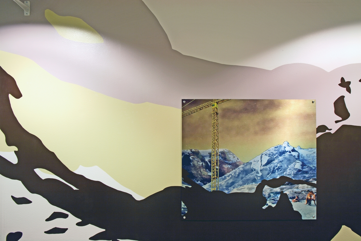 Akrylmaling på vegg med dataprint og akryl på aluminiumsplater