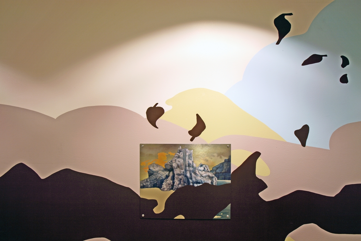 Kunstverket viser møtet mellom natur og kultur, det sublime, hvor formene understreker lengdebevegelsen i gangen.
