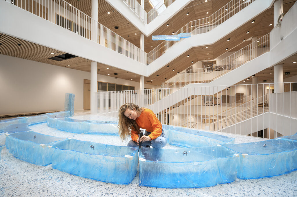 Tiril Hasselknippes kunstverk Queens of the Tear Duct, en stor, svevende installasjon laget til Domus Juridica på Tullinløkka i 2020, er tilbake på plass etter å ha blitt utsatt for omfattende skade i 2023.