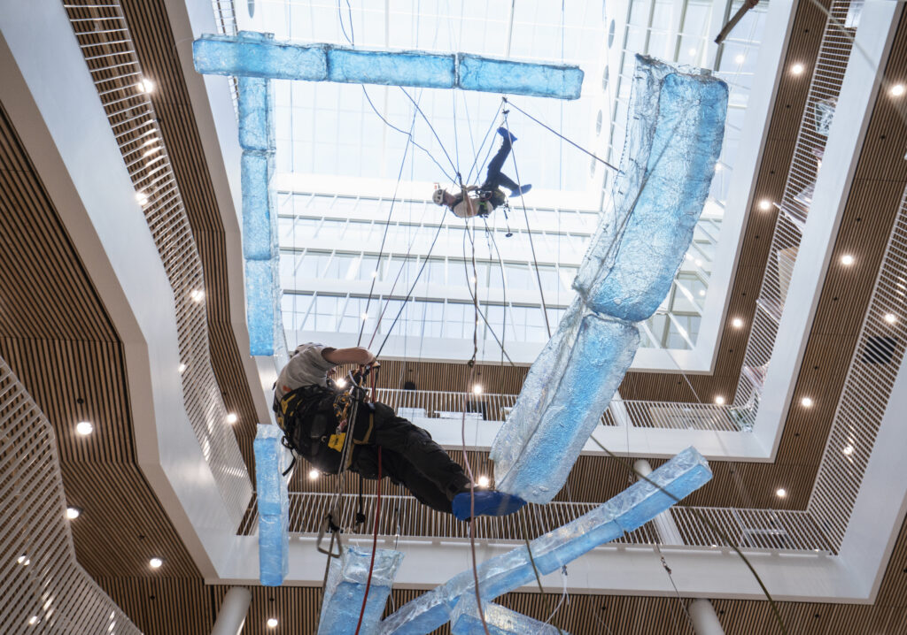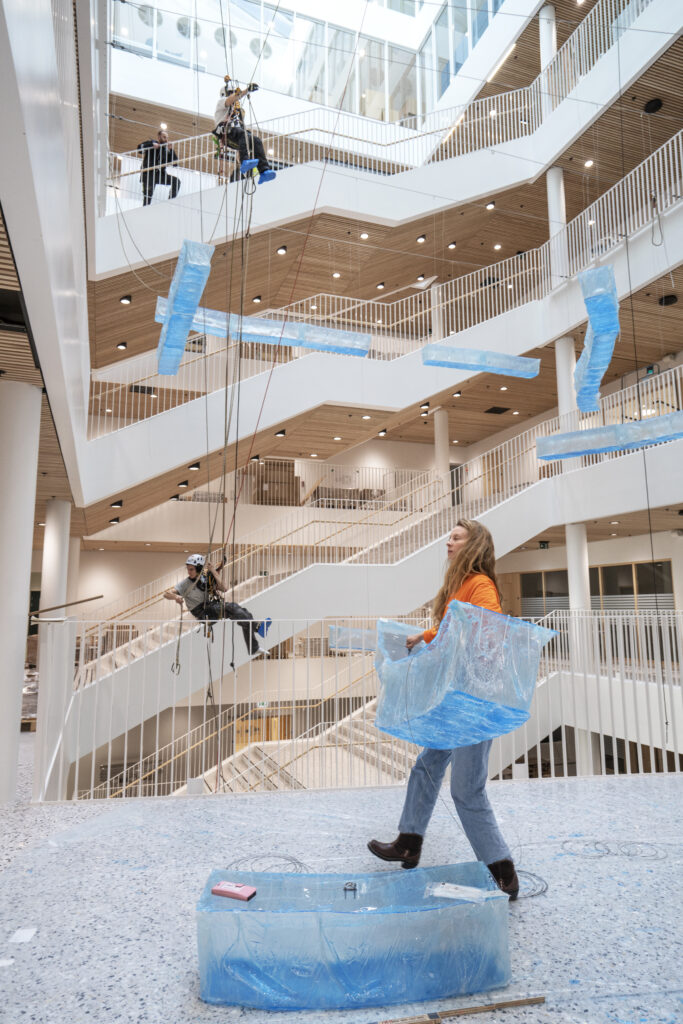 Tiril Hasselknippes kunstverk Queens of the Tear Duct, en stor, svevende installasjon laget til Domus Juridica på Tullinløkka i 2020, er tilbake på plass etter å ha blitt utsatt for omfattende skade i 2023.