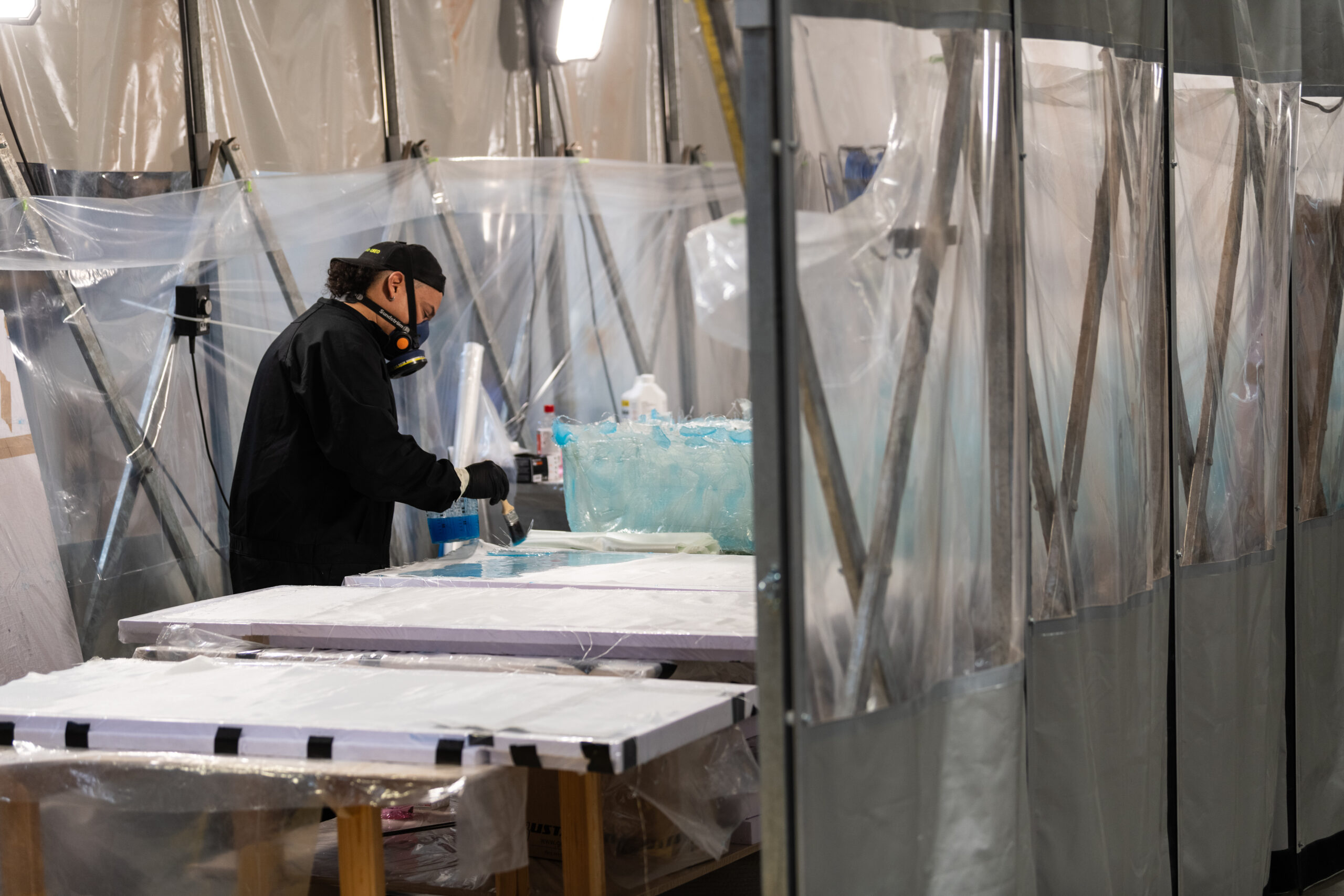 Den skulpturelle installasjonen, som altså har navnet Queens of the Tear Duct, består av syv store gjennomsiktige former. Disse er igjen satt sammen av 26 enkeltdeler støpt i epoxy og glassfiber og tilsatt en blå, vannaktig farge.