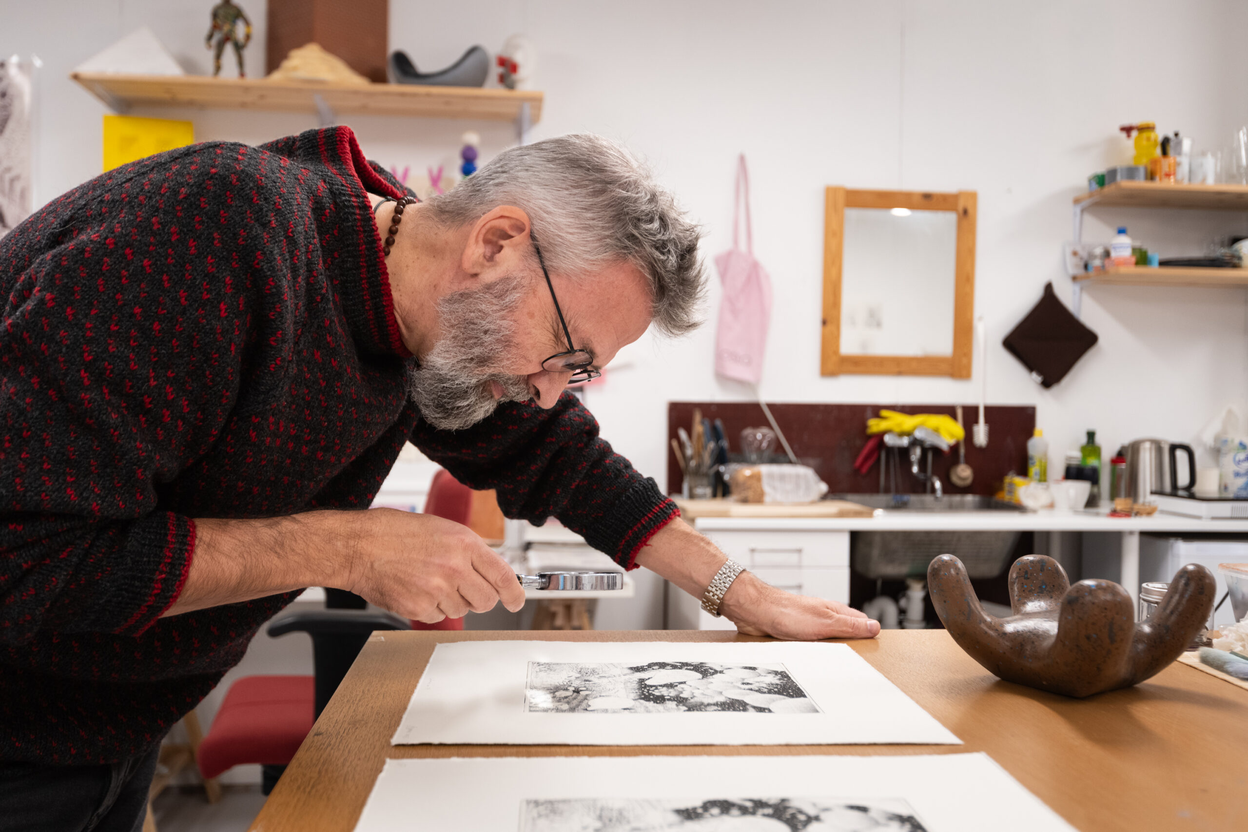 – Det er ikke alltid man er så flink til å leke når man er voksen. Man må inn en slags modus. Jeg liker å sitere Philip Guston: Når han er på atelieret og maler er han ikke alene. I begynnelsen har han publikum, han har kritikere, han har hele kunsthistorien hos seg når han står og maler, så forsvinner de når han kommer inn i det. Alle stemmene og alt man liksom skal forholde seg til. Og til slutt forsvinner kanskje til og med han selv. Da er han i gang.