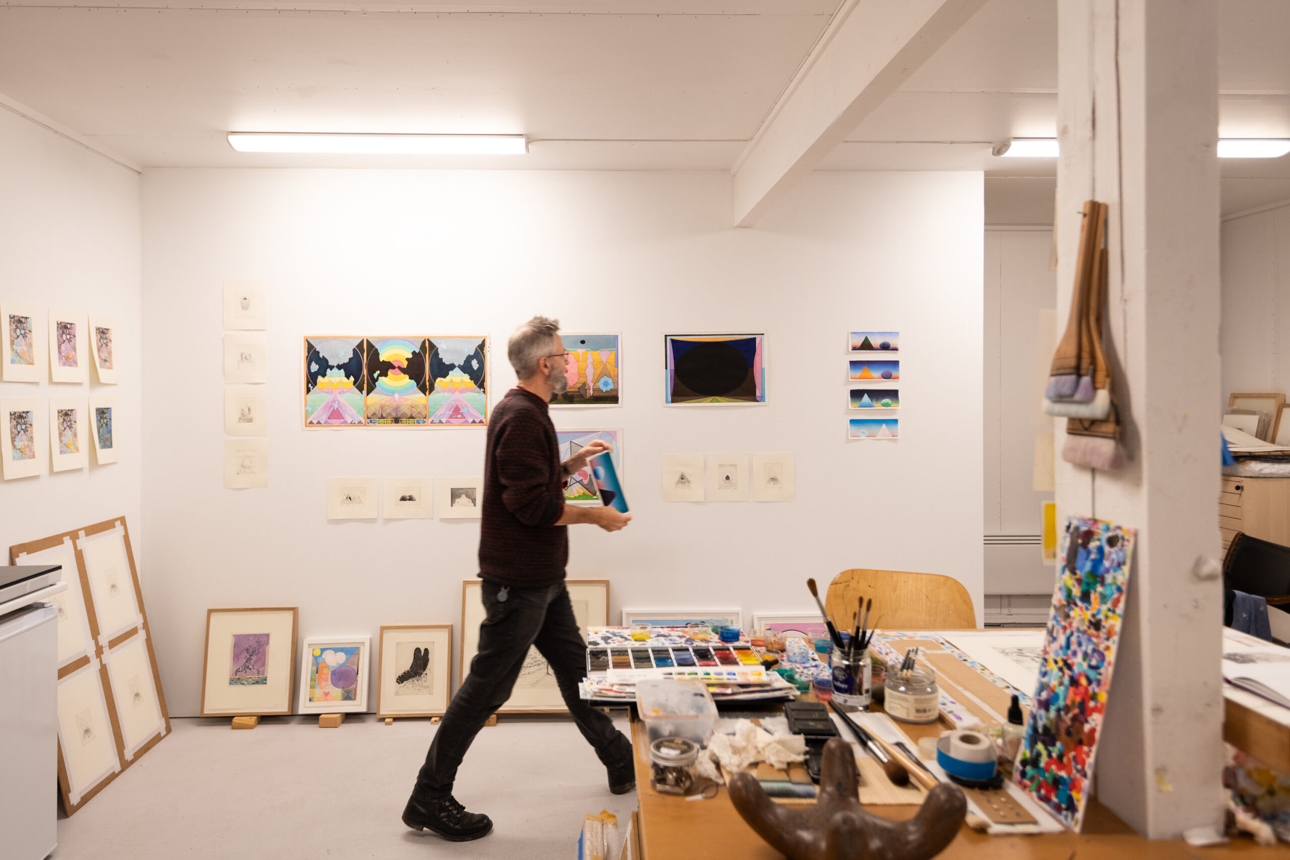 Bjørn Bjarre er en av kunstnerne som ble invitert til å lage kunstverk til Stavanger universitetssjukehus Ullandhaug som åpnet 16. november. KORO besøkte Bjarre på atelieret hans på Frysja kunstsenter i Oslo og snakket om lek, science-fiction og en mangeårig kunstpraksis der blant annet drømmer er en stor inspirasjon.