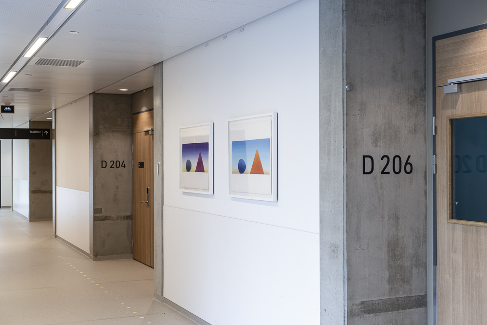– Det begynte egentlig med formene. De er urformer, nesten klisjeer, som representerer liv og død. Pyramiden er et gravkammer, og egget et nytt sårbart liv. Det er ganske litterært hvis man tenker over hva de symboliserer: Liv og død er ofte det et sykehus handler om.