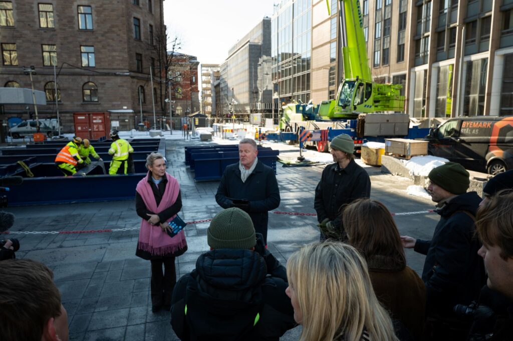 Tirsdag 24. februar inviterte KORO, Digitaliserings- og forvaltningsdepartementet (DFD) og Statsbygg presse til Johan Nygaardsvolds plass i regjeringskvartalet for å markere at det nasjonale minnestedet etter 22. juli begynner å ta form.