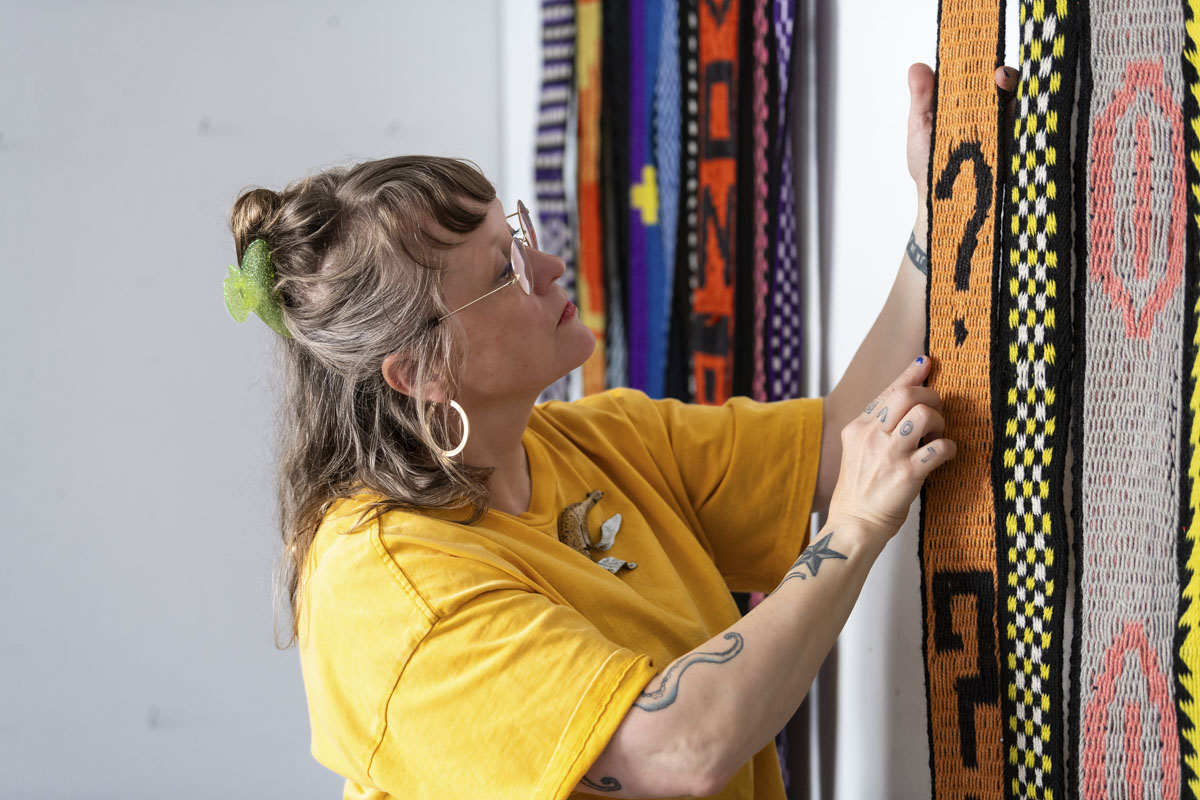 Sammen med kunstverkene til blant annet Outi Pieski, Jumana Manna og Ahmed Umar, understreker det kuratoriske grepet i regjeringskvartalet betydningen av praksiser som fremhever håndverket og materialenes egenskaper og verdi. Dette er noe vi ser generelt i kunstfeltet i dag, men det reflekterer også den posisjonen som tekstilkunsten har fått i samtidskunsten i de senere årene, en plass og en status kunstnerne har måttet kjempe for.