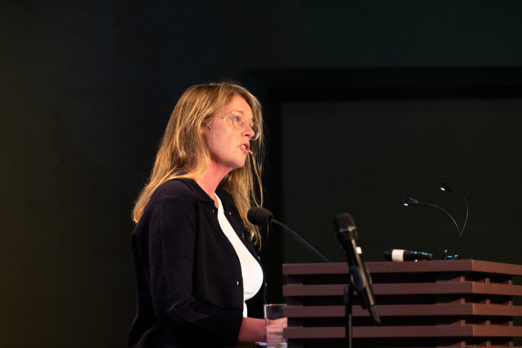 Helga-Marie Nordby forteller om planer for byggetrinn 2 på KOROs seminar 9. oktober 2025. Foto: Niklas Hart / KORO.