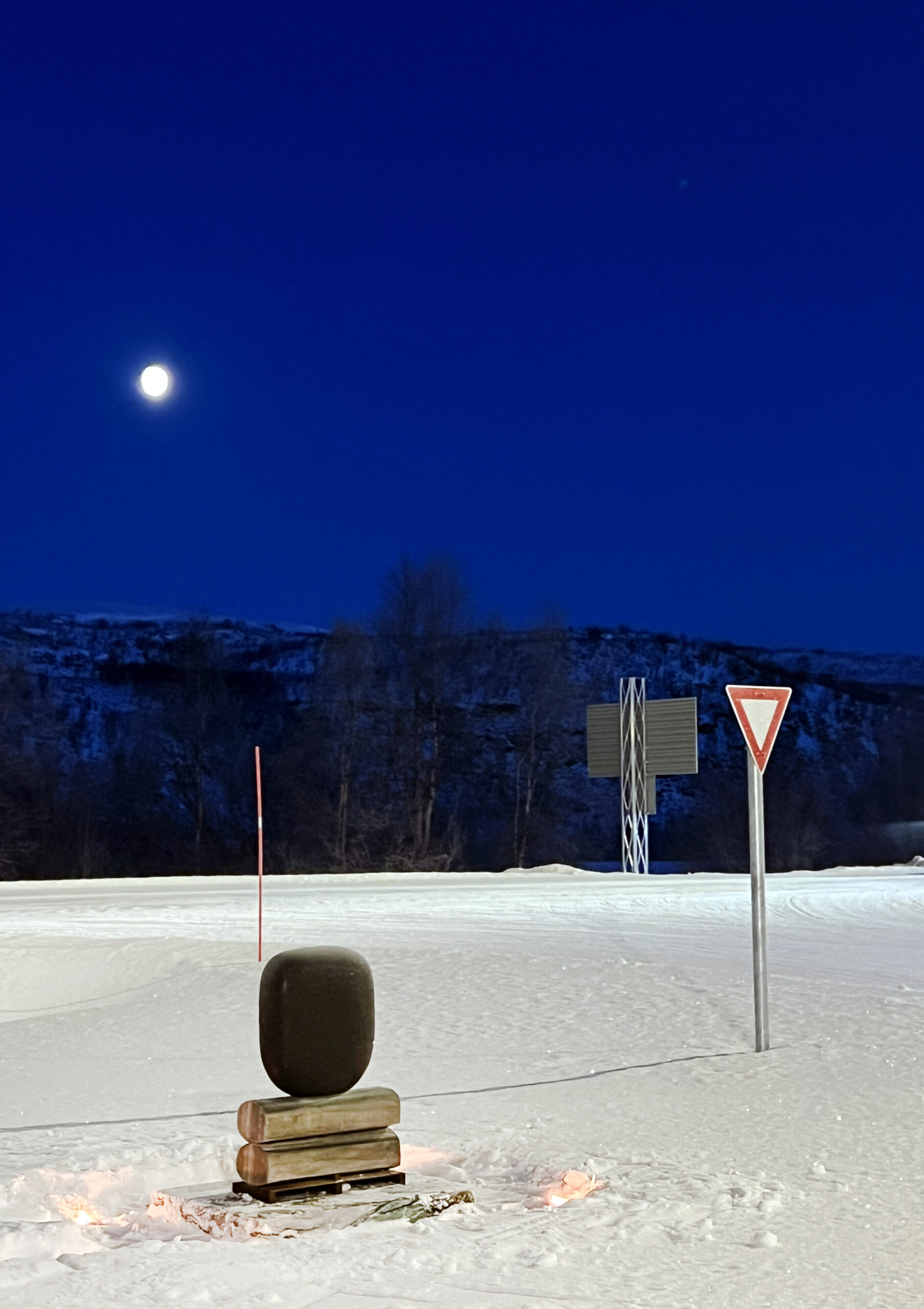 Den abstrakte steinskulpturen som Gunn Harbitz (f.1958) har installert ved Polmak tollstasjon markerer grensen mot Finnland og kan fungere som en uoffisiell grensestein. Gjennom materialvalget har skulpturen lokal tilknytning og knytter sammen det omliggende landskapet. Masikvartsitt og kvartsittskifer er blant Finnmarks mest anvendte og kjente bergarter, og diabasen er hentet fra Loimaan kommune i Finnland.